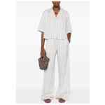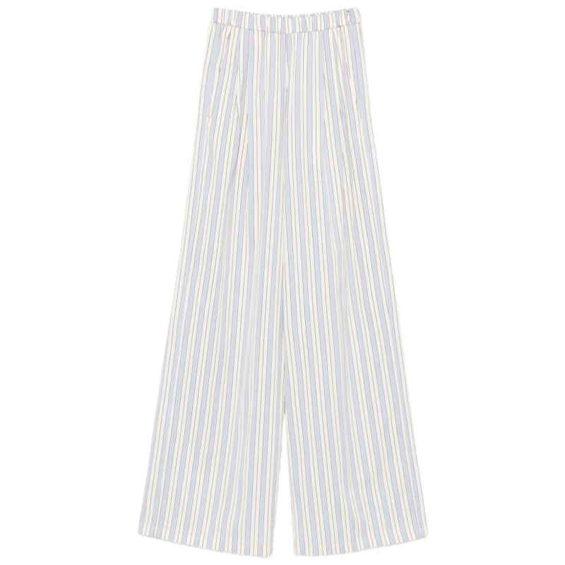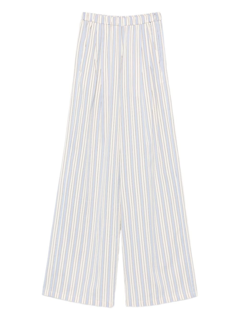 beige and blue blue vertical stripe pattern elasticated waistband wide leg Striped trousers.