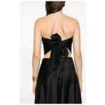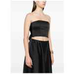 black bandeau style draped detail self-tie fastening straight neckline strapless Bustier top
