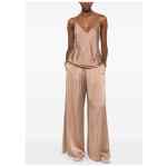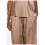 walnut brown elasticated waistband side seam pockets Silk satin trousers.