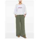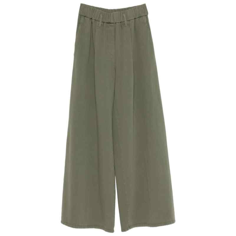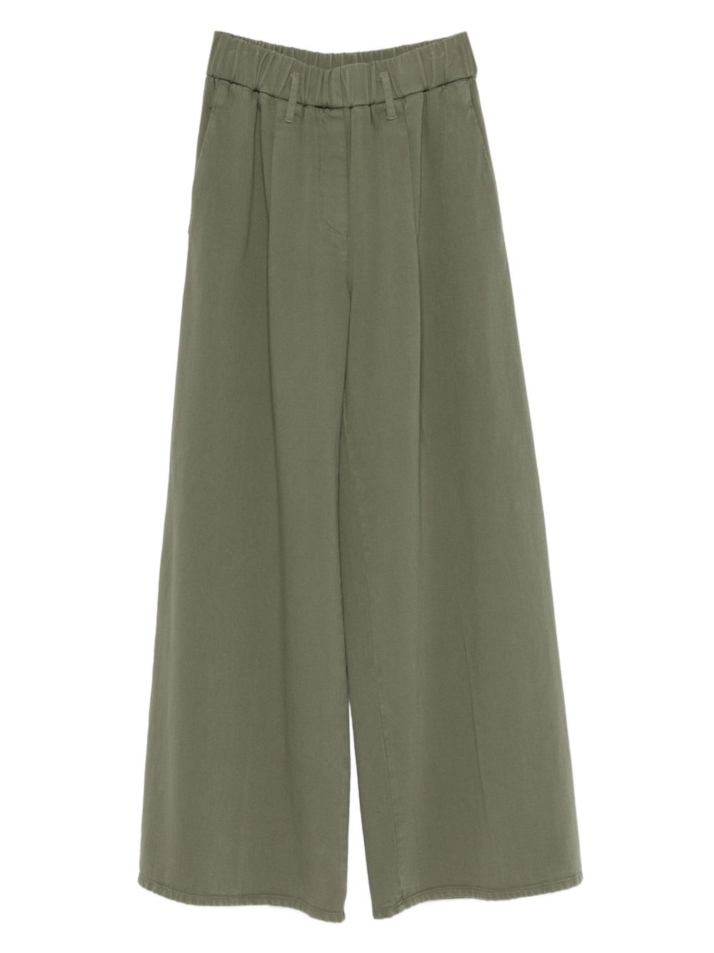 khaki elasticated waistband belt loops two side slit pockets Fluid trousers.