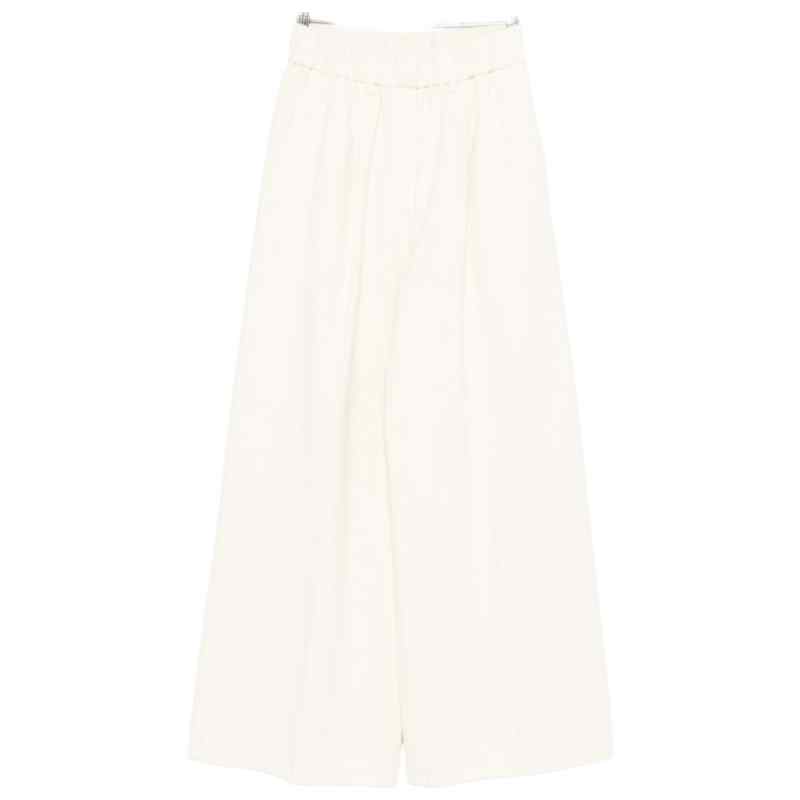 light yellow cotton elasticated waistband wide leg relaxed fit Fluid trousers.