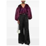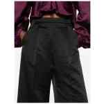 black satin finish pleated design elasticated waistband side pockets Flared leg trousers
