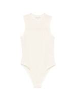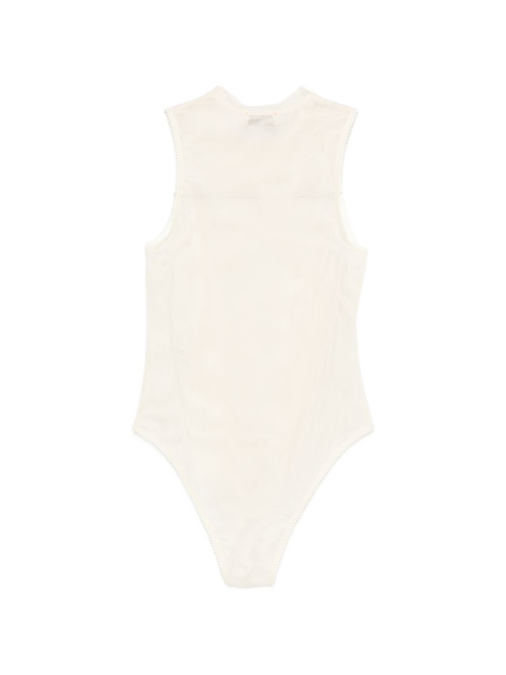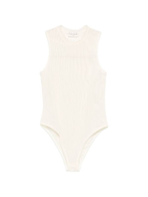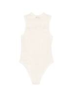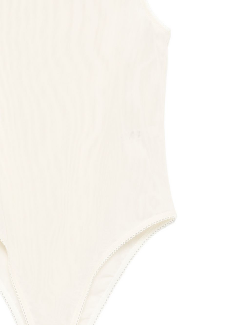 beige scalloped trim sleeveless round neck Tulle bodysuit.