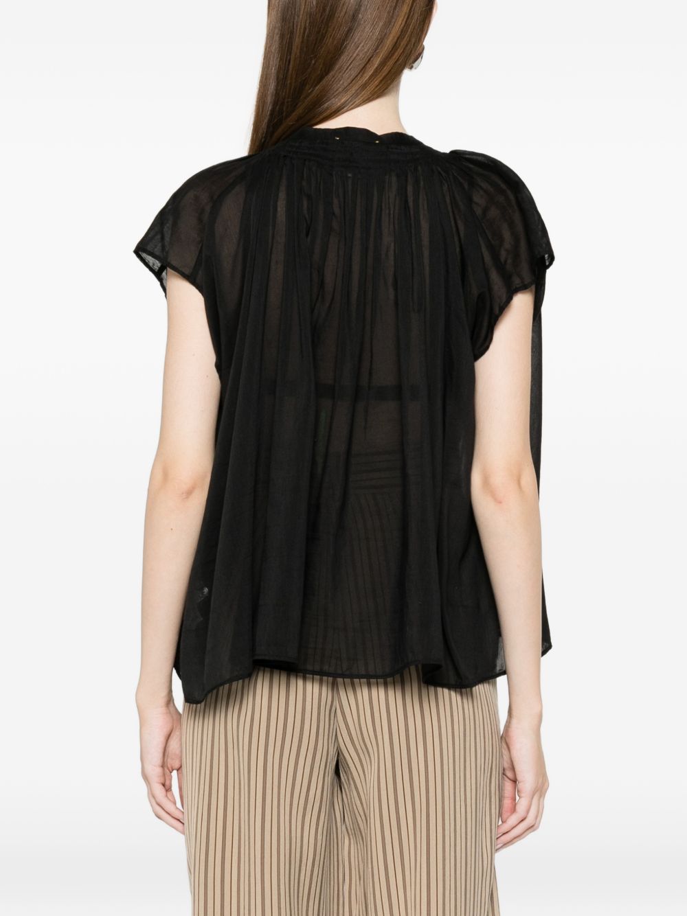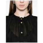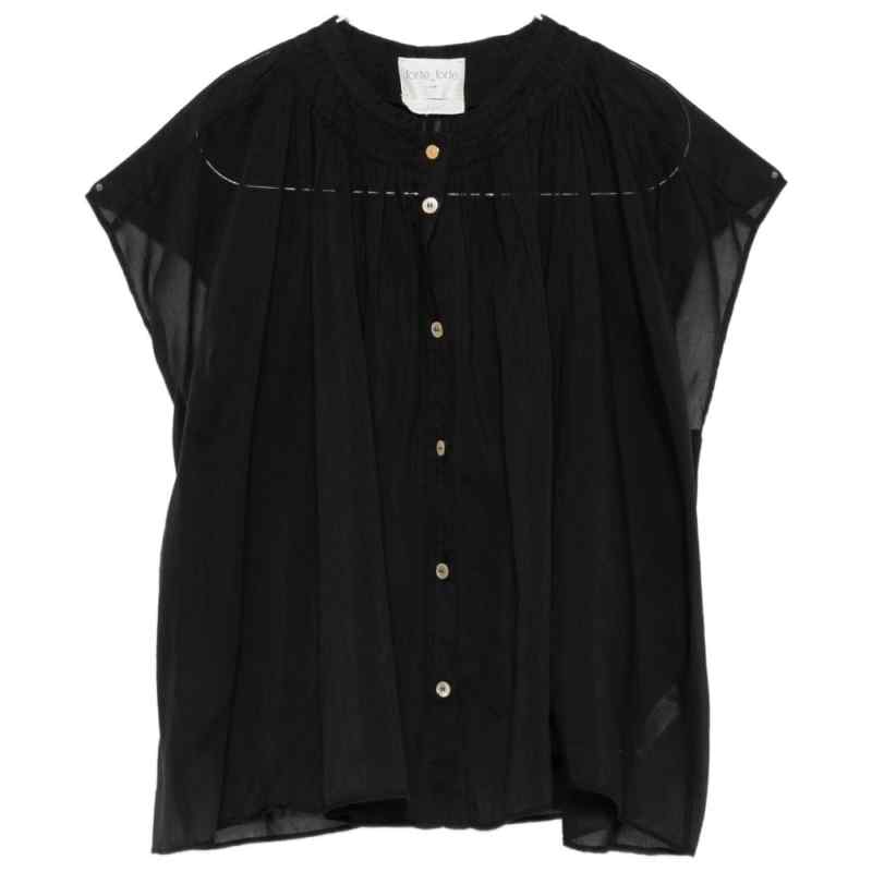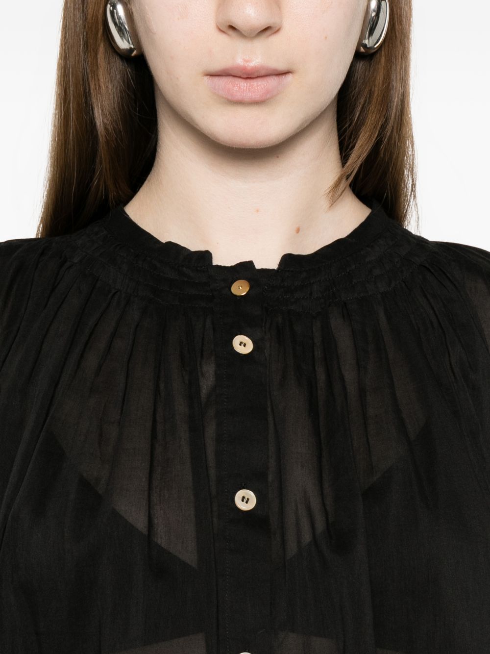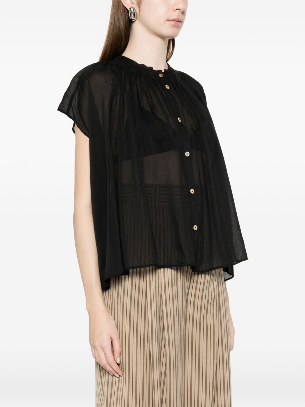 black, voile, button fastening Voile cotton and silk shirt.