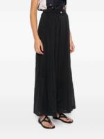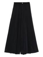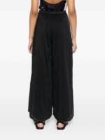 black wide leg button fastening high waist belt loops tonal stitching Voile cotton and silk trousers.