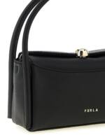 Boston nicole’ mini handbag in grain-effect print leather with double fixed handle, Magnetic flap closure, Front metal lettering logo, And adjustable and removable shoulder strap. Size and Fit – W 18.5 x H 10 x D 6 cm