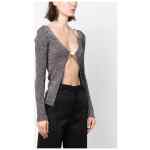 glittered V-neck cardigan from GCDS featuring dark grey, knitted construction, glitter detailing, V-neck, clasp fastening, long sleeves and straight hem. Logo lurex cardigan