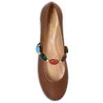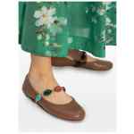 brown buckle fastening round toe branded insole Shanti leather ballets