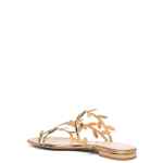 gold-tone calf leather patent finish leaf motif almond open toe branded leather insole flat leather sole slip-on style Flavia flat sandals