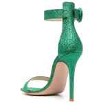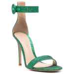 Portofino 105mm glitter sandals from GIANVITO ROSSI featuring bright green, calf leather, glitter detailing, single toe strap, open toe, buckle-fastening ankle strap, branded leather insole and high stiletto heel. Portofino starlight leather high heel sandals