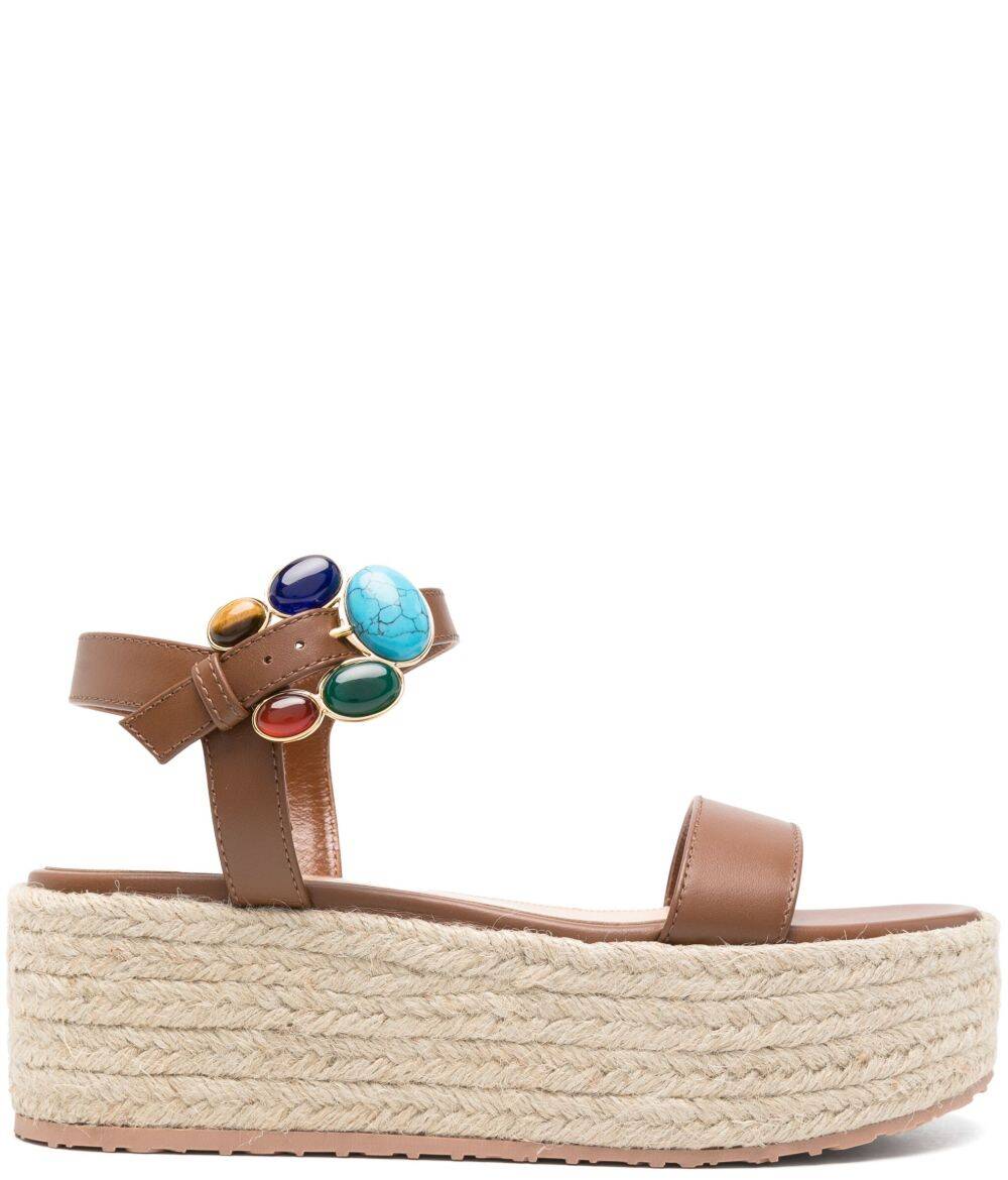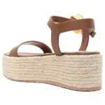 brown buckle-fastening ankle strap rubber sole branded leather insole almond open toe Platform sandals