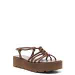camel brown elasticated slingback strap caged design branded leather insole almond open toe Hebe leather sandals