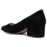 jet black calf suede/calf leather branded leather insole pointed toe block heel 45mm low heel Piper suede leather pumps