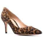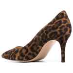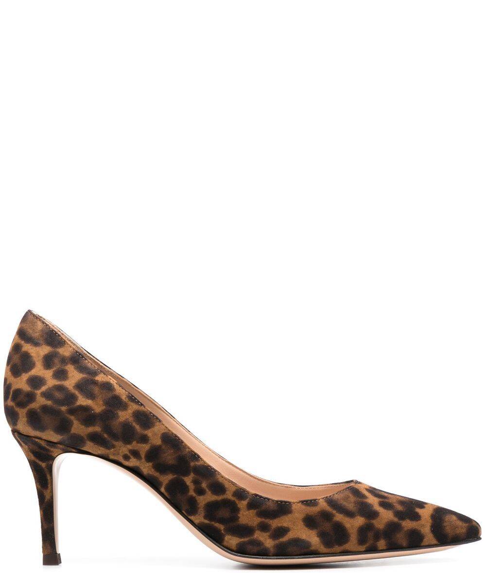 brown calf suede all-over leopard print pointed toe branded leather insole 70mm stiletto heel Gianvito 70 suede leather pumps