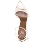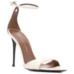 off-white silk upper stiletto heel ankle strap buckle fastening pointed toe