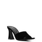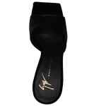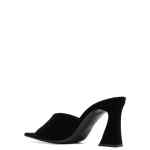 Solhene 90mm velvet-effect sandals from Giuseppe Zanotti featuring black, calf leather, velvet effect, square open toe, slip-on style, branded footbed, high block heel and leather sole. Solhene velvet mules