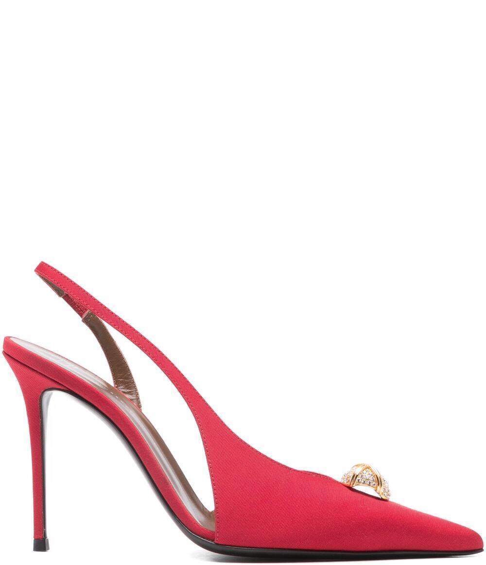 bright red pointed toe stiletto heel embellishment slingback strap This piece comes complete with a protective dust bag. Carole slingback pumps