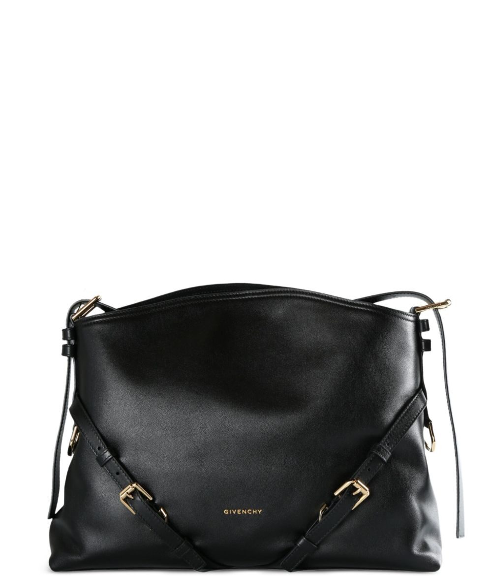 black top zip fastening decorative buckle detail logo stamp to the front voyou bag iconic line Voyou medium shoulder bag