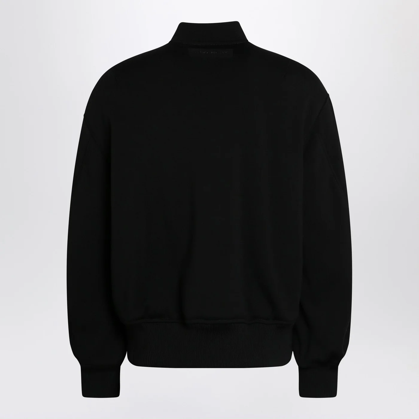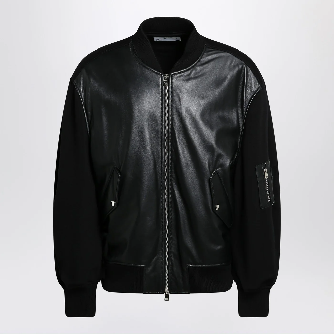Givenchy bomber in black leather and wool featuring a central zip closure zip pocket on the sleeve ribbed collar cuffs and hem.