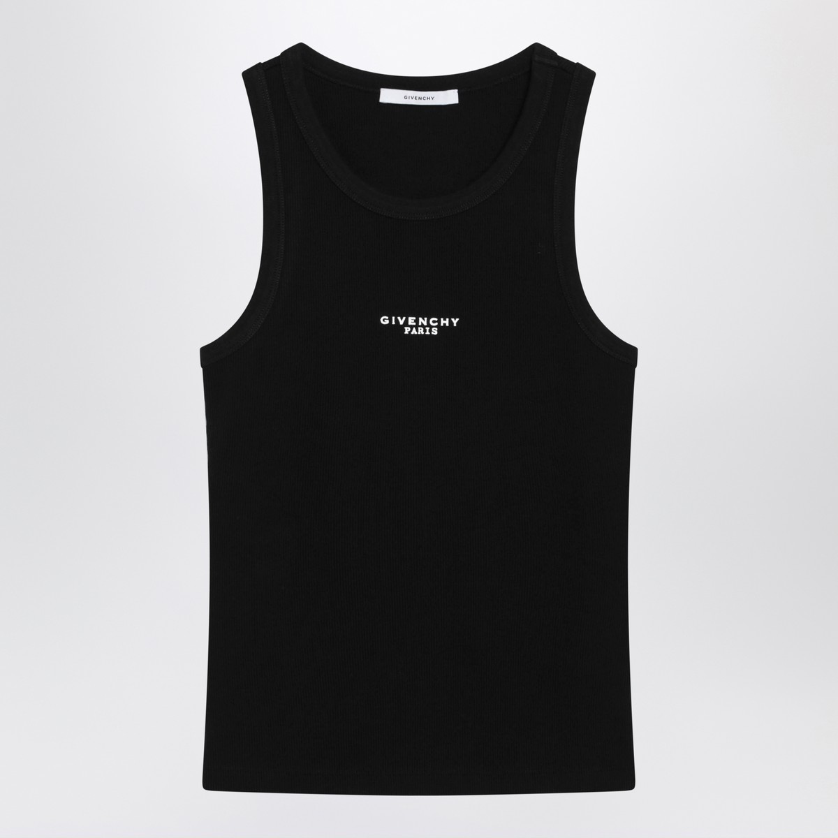 Sleeveless crew-neck top by Givenchy in black cotton, featuring a slim ribbed cut and contrasting logo lettering print on the chest.