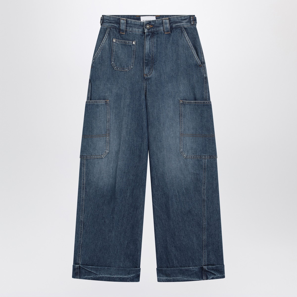 Givenchy medium-blue cotton denim jeans with a lightly washed effect, featuring a cropped leg, front zip and button closure, adjustable waist with buttons, belt loops, three front pockets, two side pockets and two back pockets, one with embroidered logo lettering.