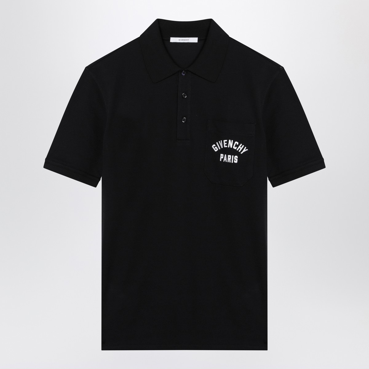 Givenchy dark navy blue cotton polo shirt featuring short sleeves, front button fastening, a chest pocket with contrasting logo lettering embroidery and side slits.