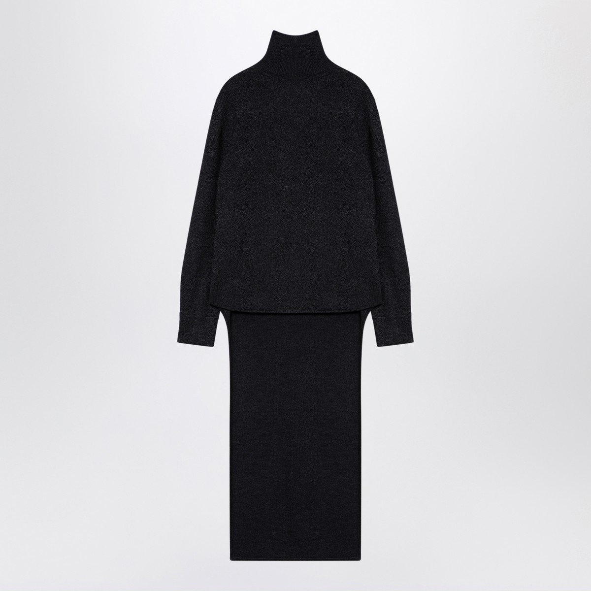 Dark grey wool and cashmere blend jumper by Givenchy, features a ribbed turtleneck, long sleeves with button fastening and a drawstring back.
