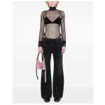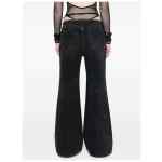 black cotton denim whiskering effect at the thighs belted waist frayed edge front press-stud and zip fastening flared two side inset pockets two rear patch pockets straight hem long length Wide-leg denim cotton jeans