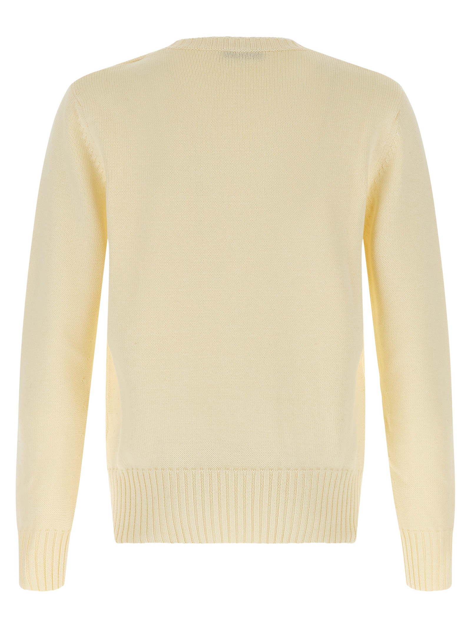 Cotton crewneck sweater with tone-on-tone embroidered front logo, long cuffed sleeves.