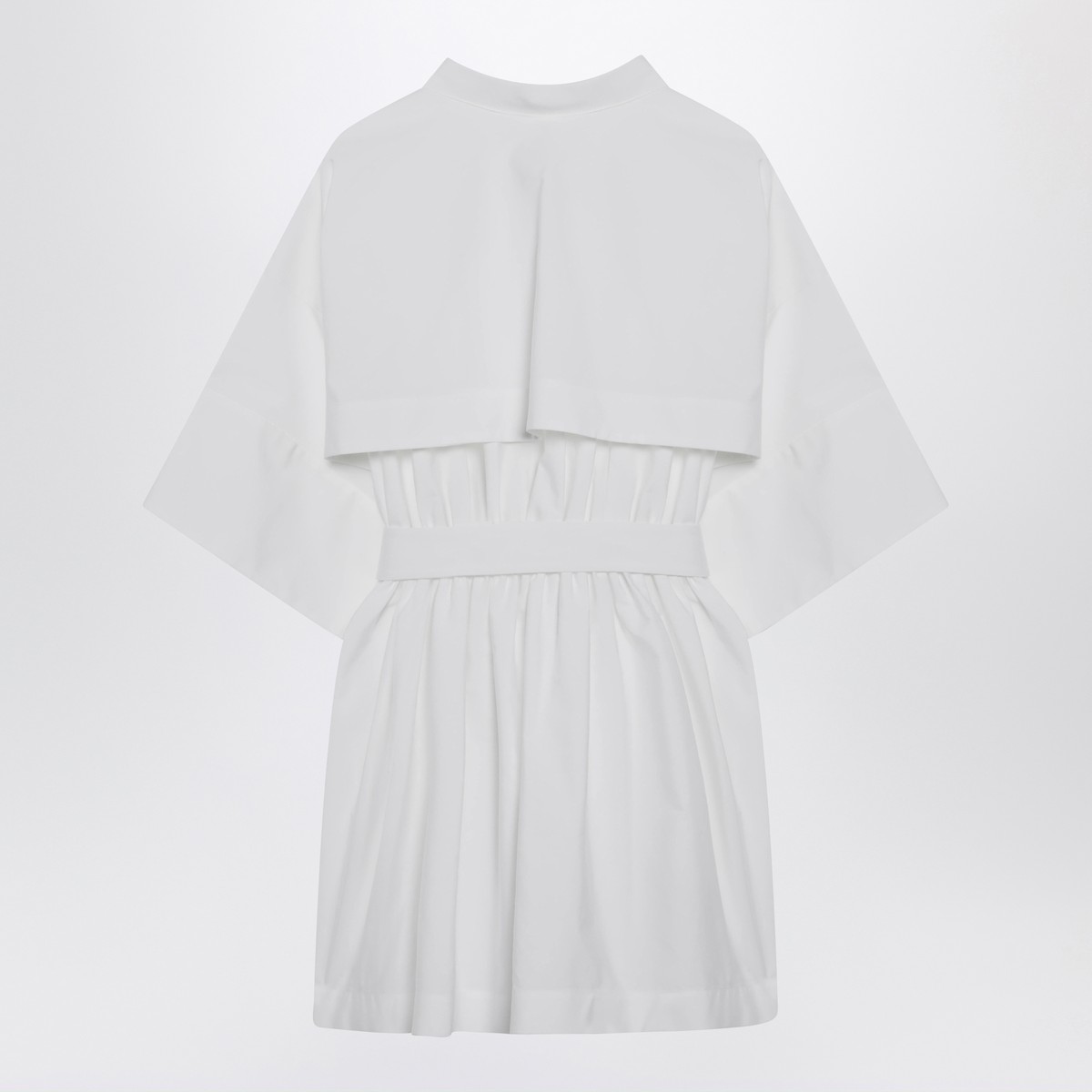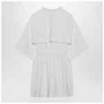 Mini shirt dress by Givenchy in white cotton poplin, featuring short sleeves, wide classic collar, concealed front button fastening, silver-tone logo-engraved button, cape detail on the back and pleated fitted waist with removable belt.