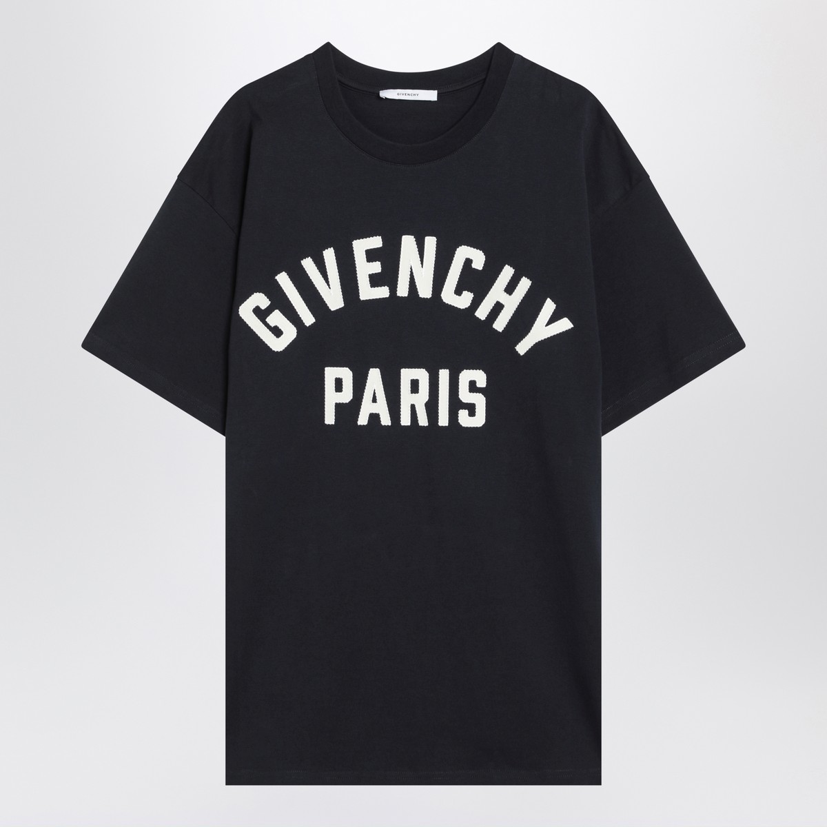 Navy blue cotton Givenchy T-shirt, featuring a crew neck design, short sleeves, and a front logo print.