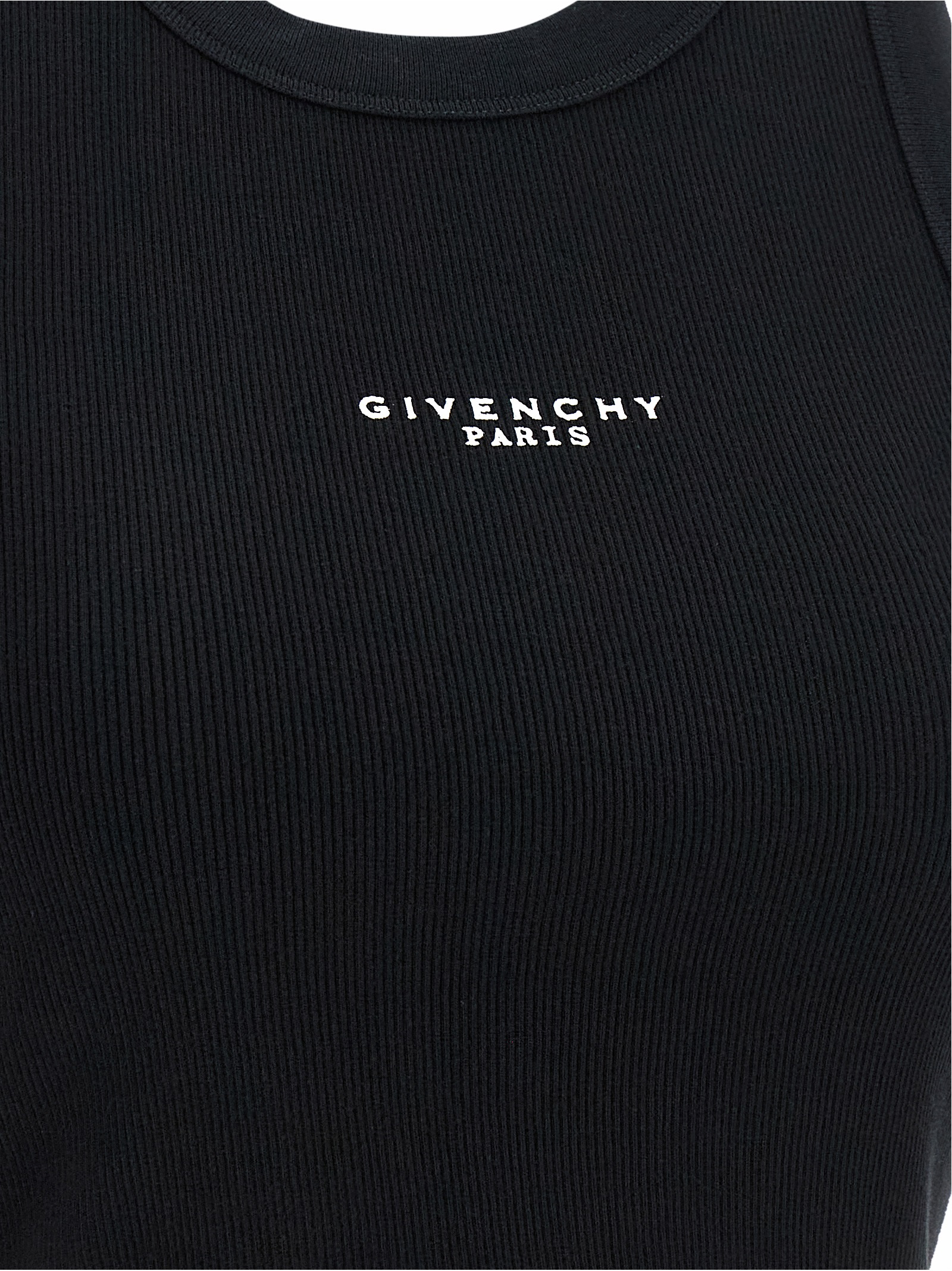 Ribbed stretch cotton top with front ‘givenchy paris’ print, Cropped fit, Crew neck, Sleeveless.