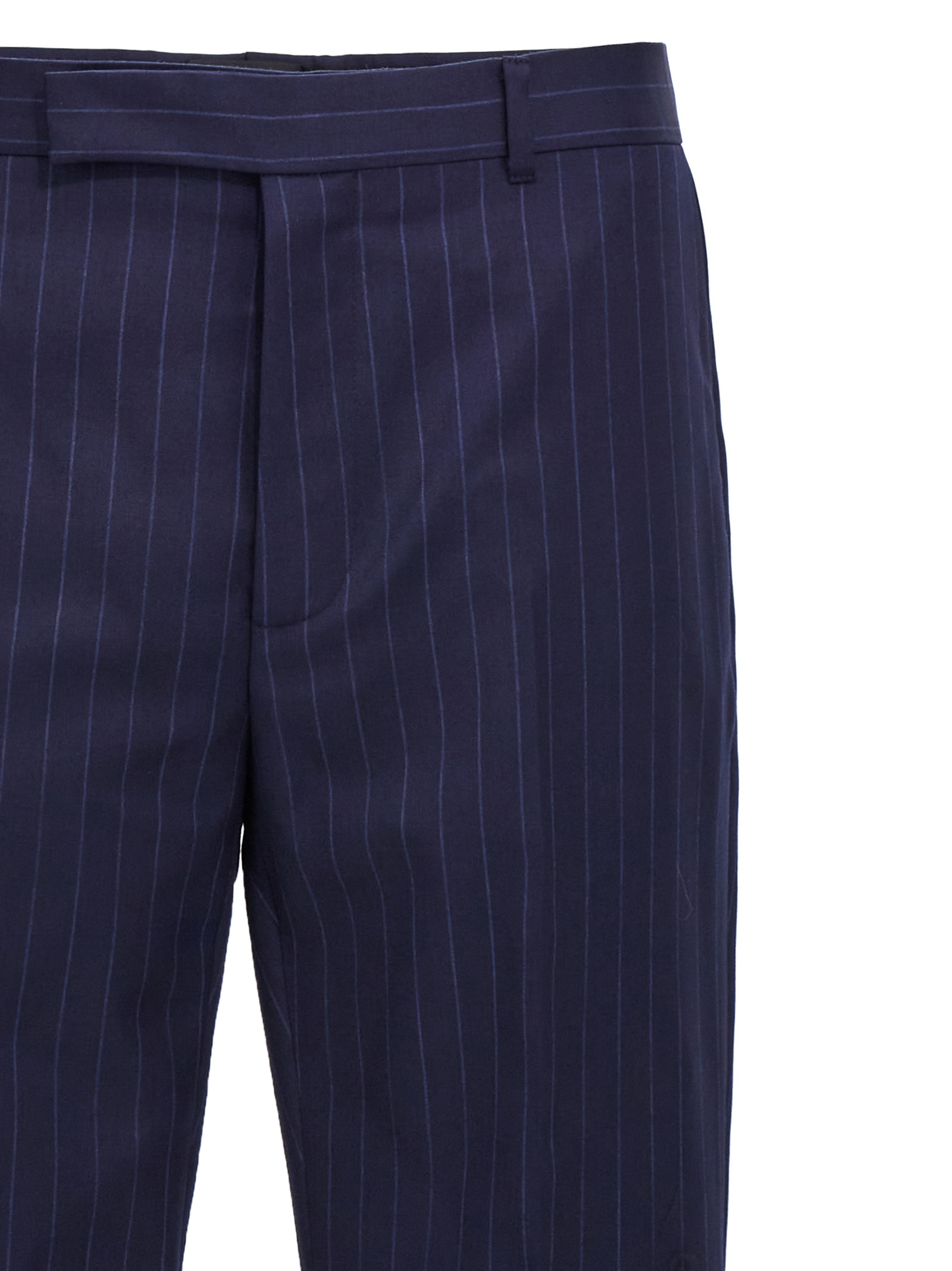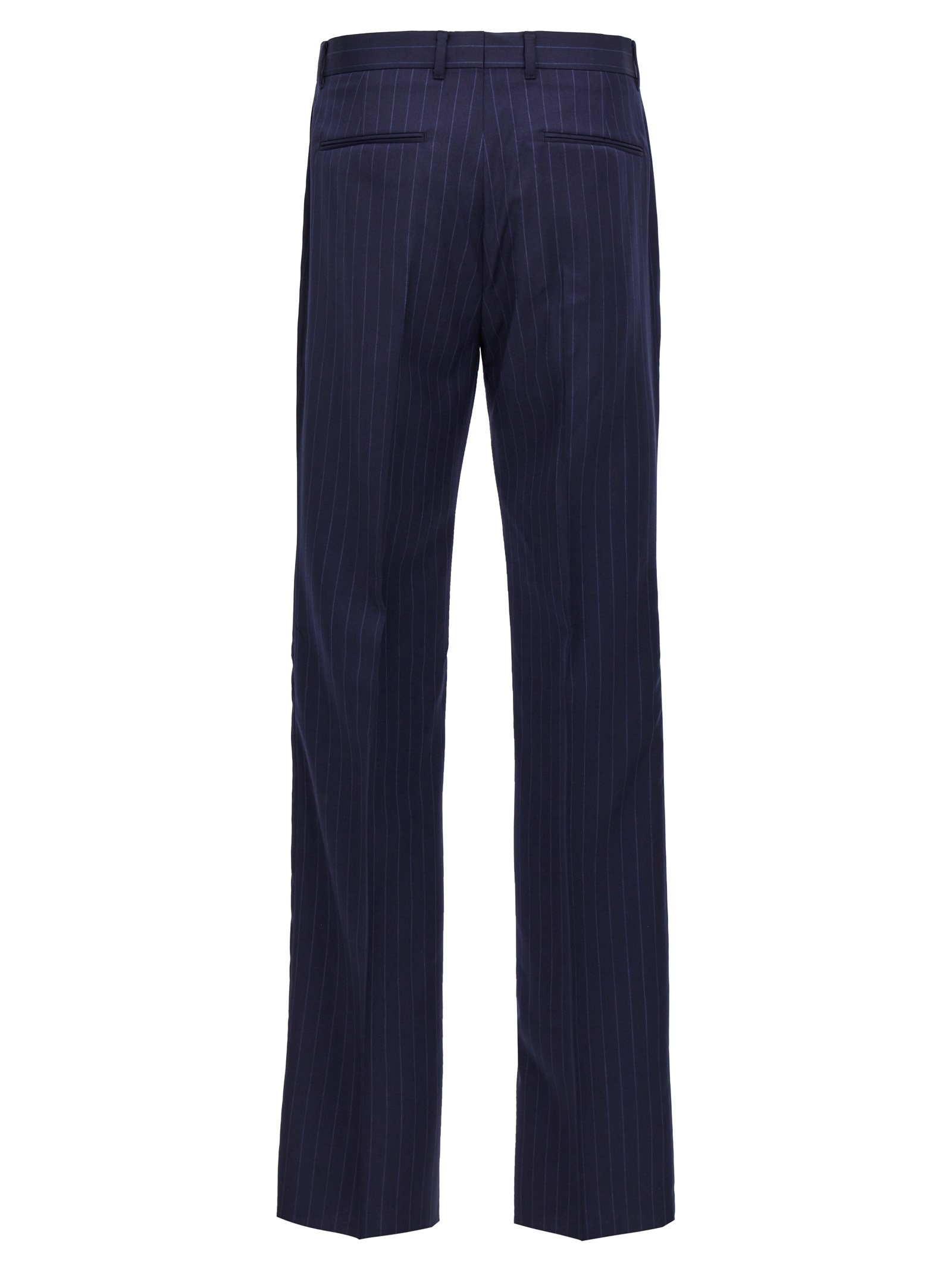Pinstripe wool pants, Zip and hook closure, Pockets, Leg with stretched pleat.