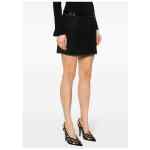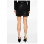 black cotton washed denim crinkled finish wraparound style belted waist thigh-length unlined straight hem concealed front button fastening VoYou denim mini skirt