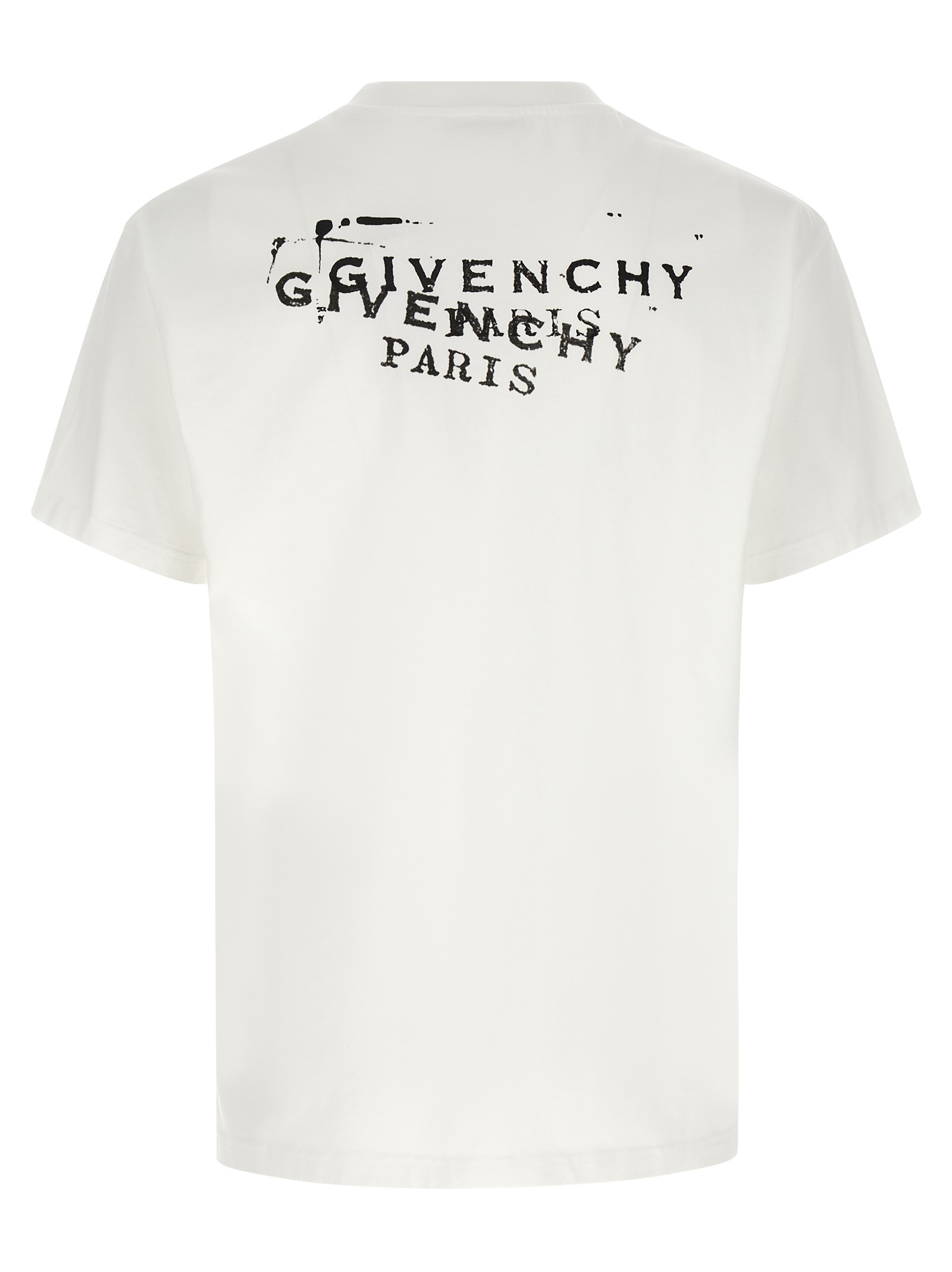 Cotton T-shirt with ‘Givenchy Stamp’ print on the front and back, crew neck, short sleeves.
