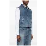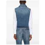 indigo blue denim embroidered logo at the chest classic collar front press-stud fastening sleeveless two side zip-fastening pockets front flap pocket straight hem full lining Denim cotton vest