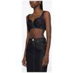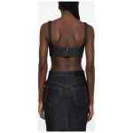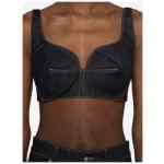 Raw denim bra top with contrasting stitching, zip and hook closure at the back. Denim cotton bra top