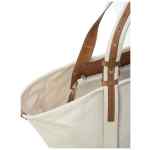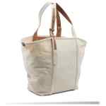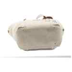 ecru brown inserts adjustable top handles print hook closure removable zip pouch metal feet 24.7 canvas tote bag