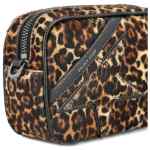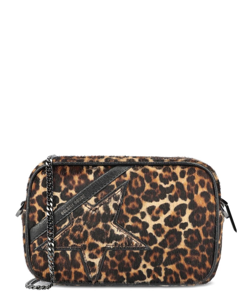 brown. beige and black leopard print leather trim chain shoulder strap star detail zip fastening Star mini leather crossbody bag