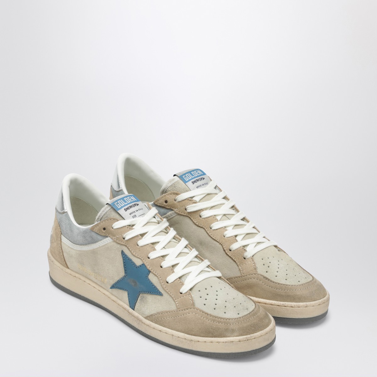 Golden Goose Deluxe Brand sneakers with a beige and grey vintage-effect finish, featuring a silver heel with logo, perforated round toe, lace-up fastening, a contrasting iconic side star and a logo tongue.