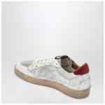 Golden Goose Deluxe Brand sneakers with a silver and white vintage-effect finish, featuring red suede details, a perforated grey suede round toe, lace-up fastening, the iconic side star and a logo tongue.