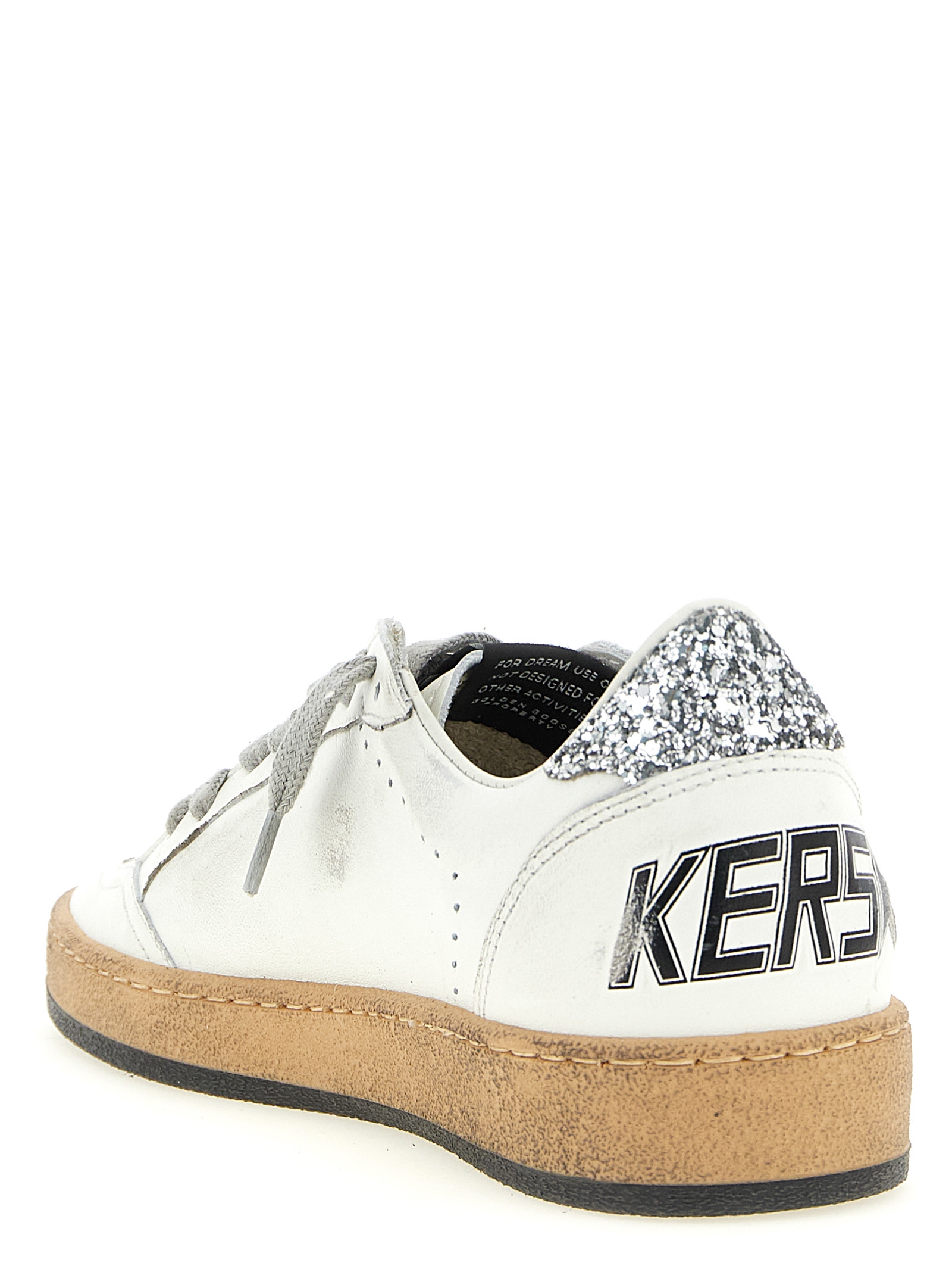 Ball star sneakers in used-effect leather with glitter details, Laces, And rubber sole.