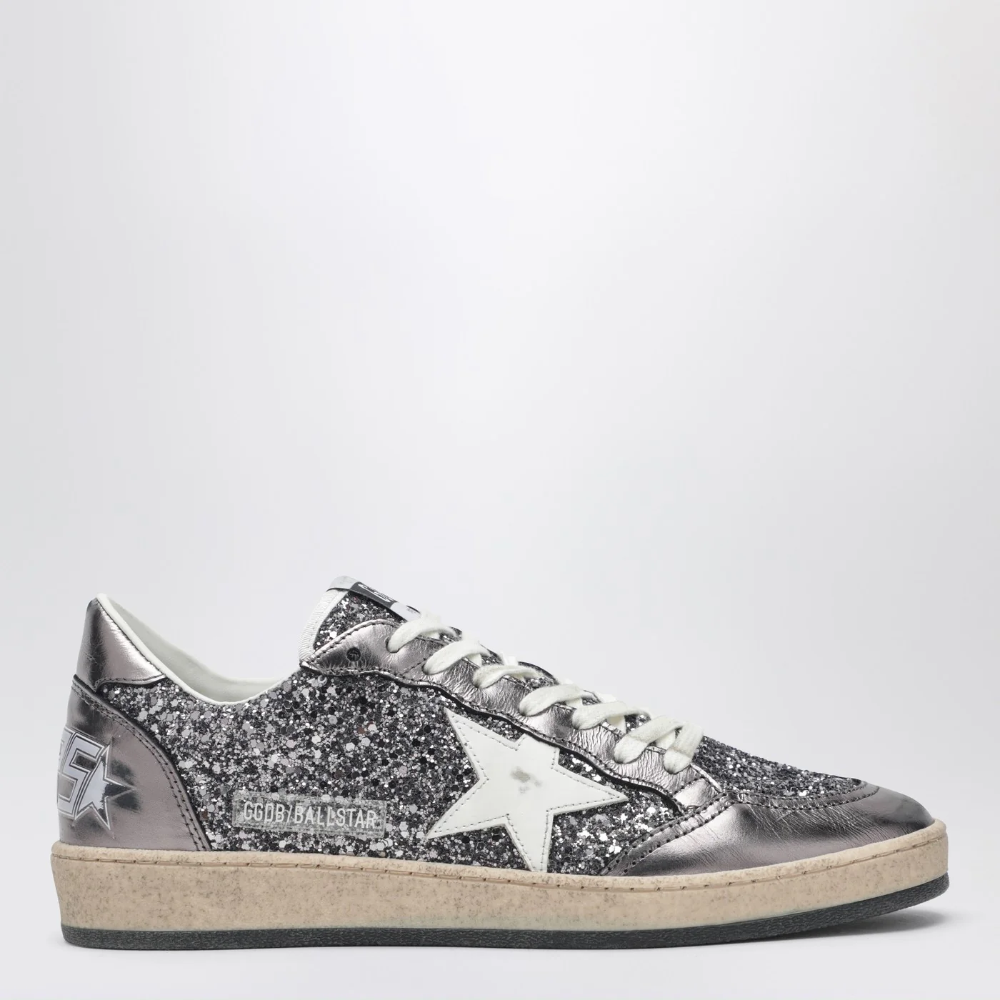 Sneaker by Golden Goose Deluxe Brand in grey and purple leather covered in glitter