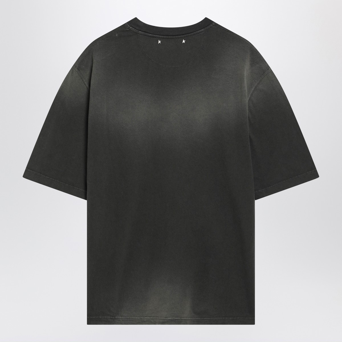 T-shirt by Golden Goose Deluxe Brand in black cotton with a vintage effect, featuring a contrasting Star logo print on the front, double star detail on the back, short sleeves and ribbed crew neck.