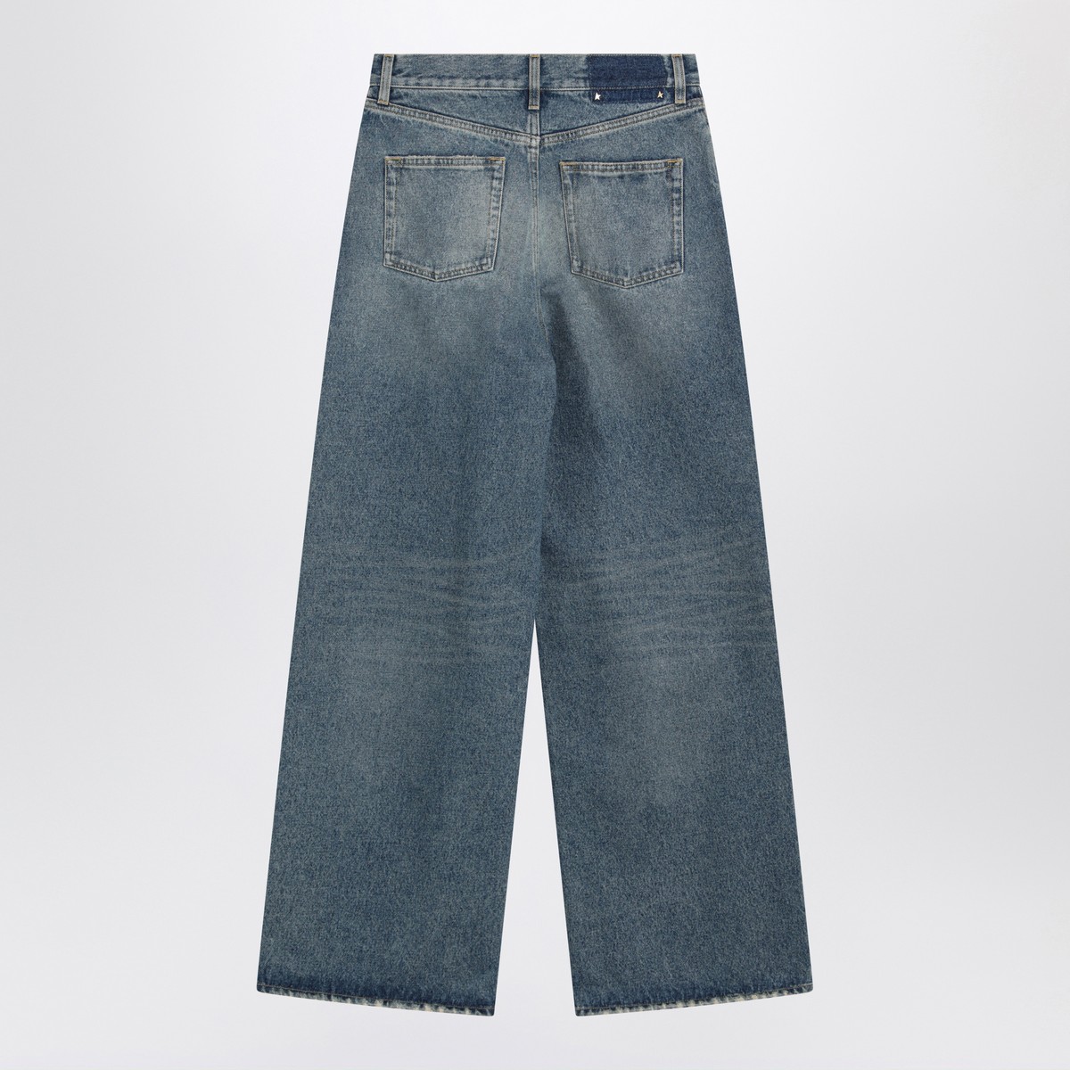 Blue washed cotton denim Golden Goose Deluxe Brand jeans, featuring a wide leg, front zip and button fastening, belt loops, five classic pockets and double star logo on the back.
