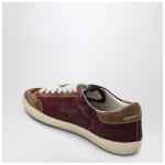 Sneakers by Golden Goose in bordeaux and brown scuffed leather featuring round toe, lace-up closure, white leather star patch on the side, side logo, logo lettering on the heel, vintage effect and rubber sole.