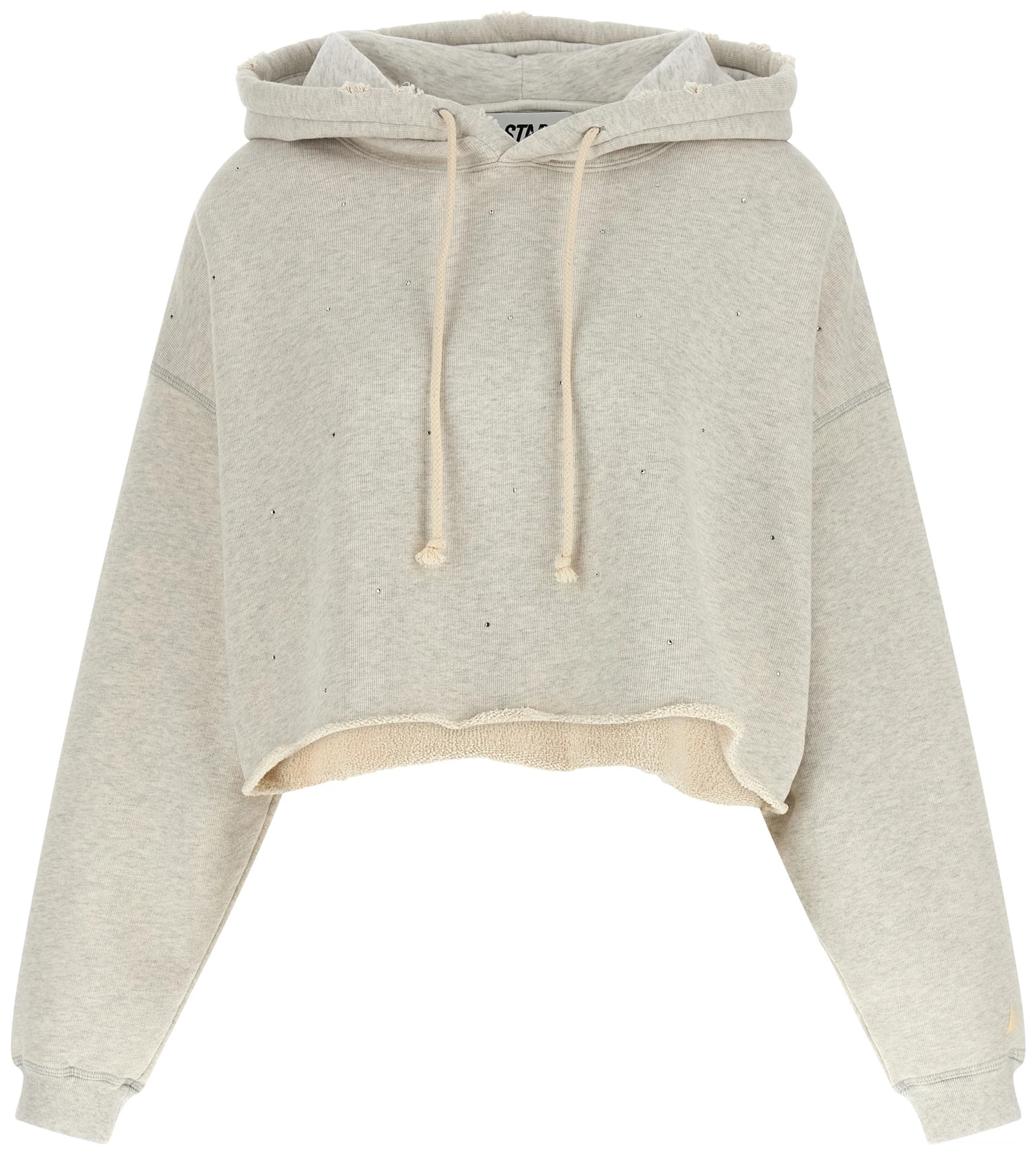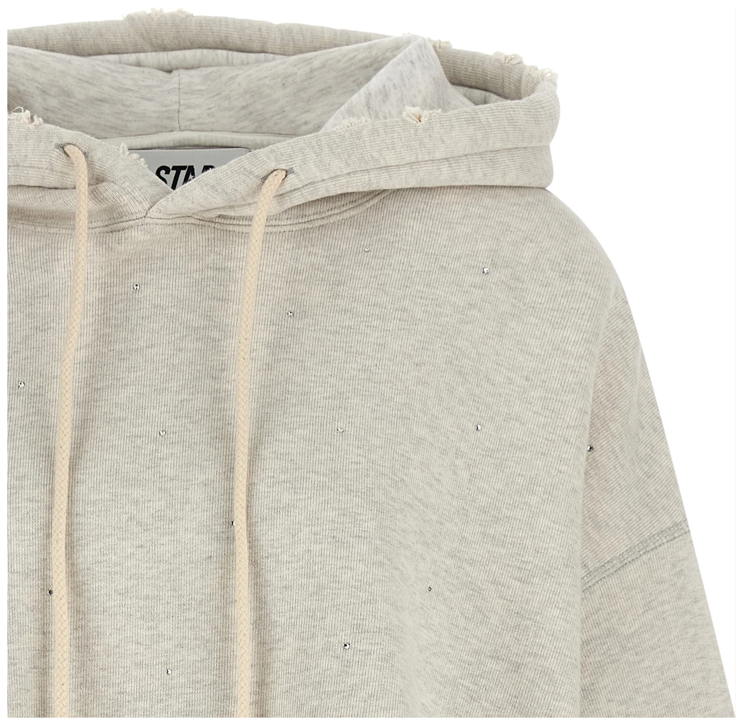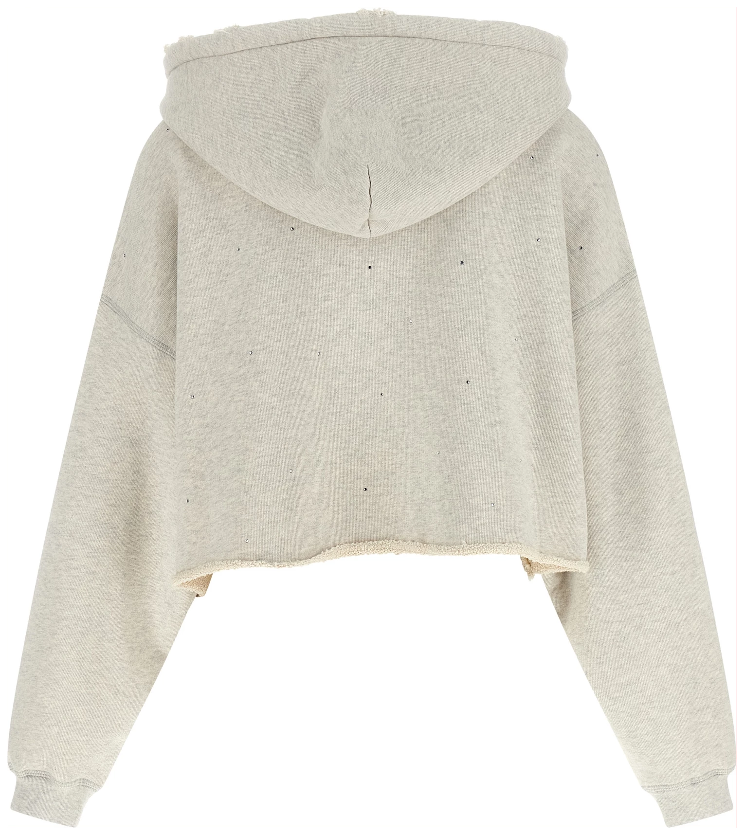 Used-effect mélange cotton terry hoodie with all-over crystal appliqué,