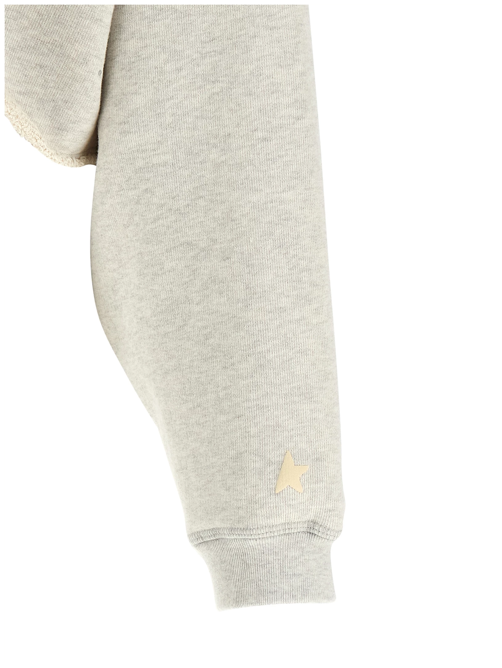 Crop model, Long sleeves with cuffs and dropped shoulder, Garment bottom with raw cut hem.