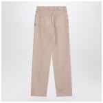 Golden Goose Deluxe Brand jeans in light pink cotton denim, featuring five classic pockets, belt loops, front zip and button closure, double star logo on the back, and relaxed fit.
