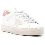 white calf leather smooth grain perforated detailing decorative stitching logo patch at the tongue signature star patch to the sides contrasting branded heel counter round toe front lace-up fastening branded leather insole flatform sole Hi Star leather sneakers